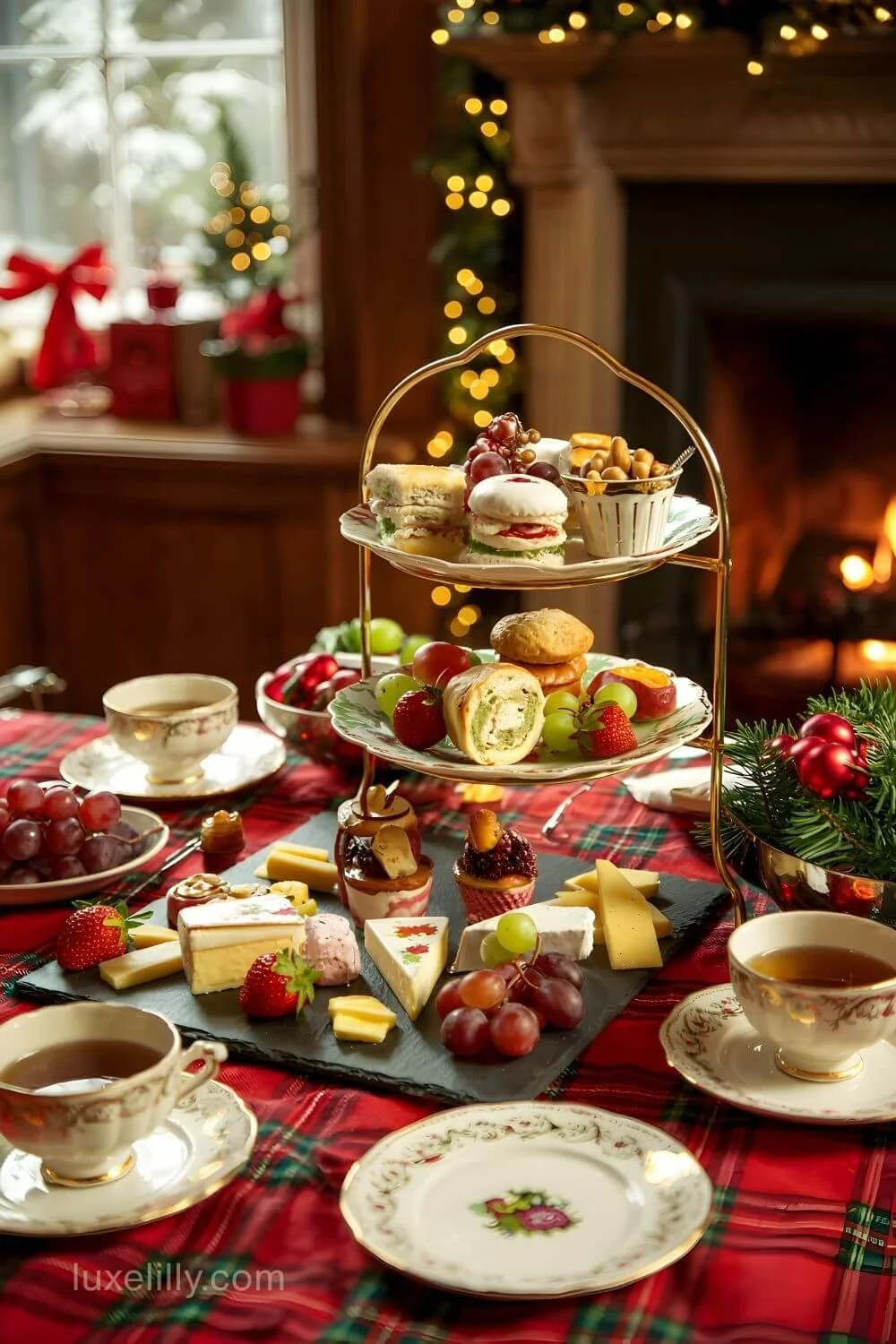 How you present your food is just as important. Use tiered dishes, fancy linens, and holiday china to enhance the look. These details will make your christmas-themed tea event unforgettable for your guests.