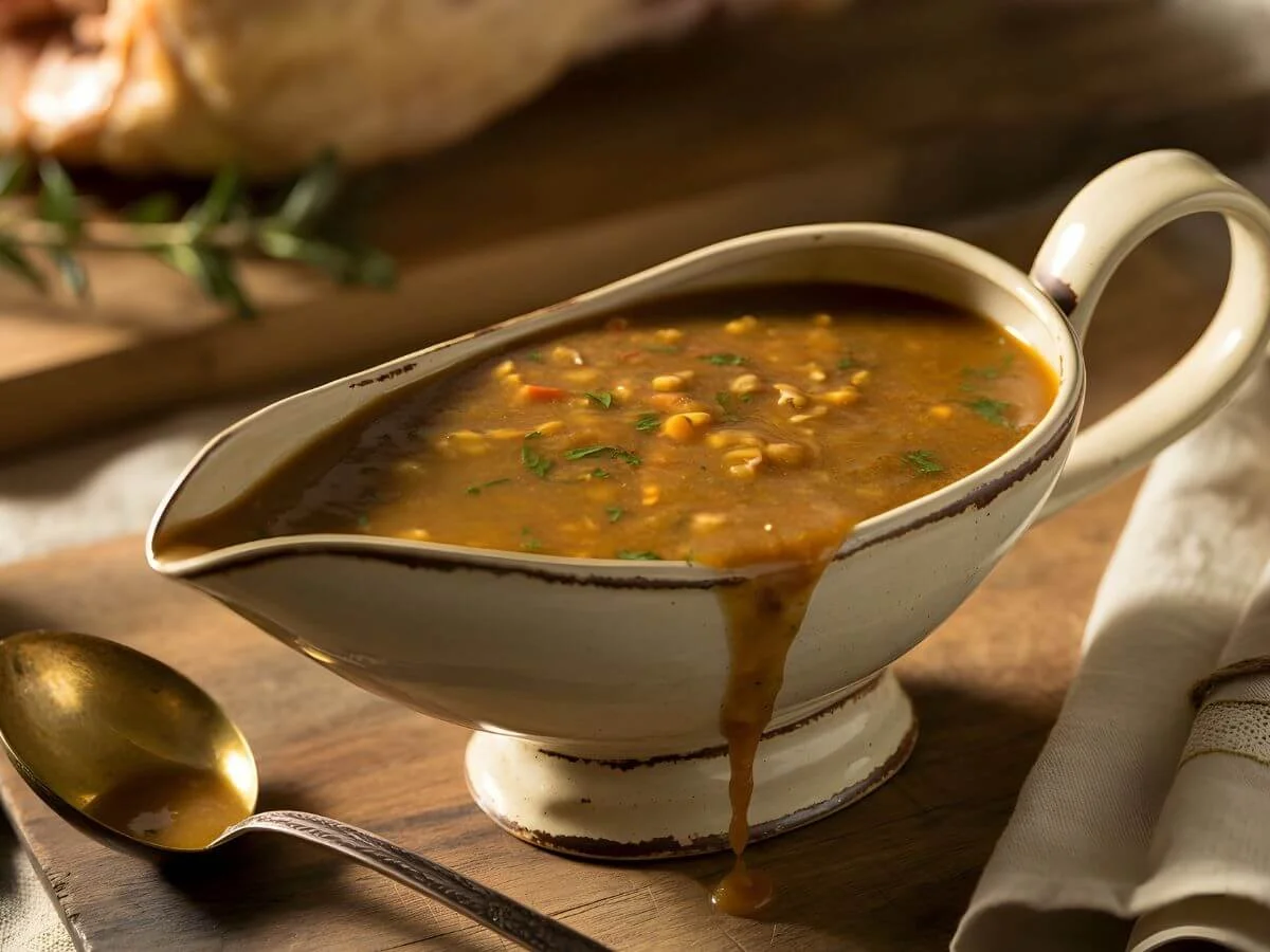 Now don’t go getting squeamish about the giblets, sugar. They’re what give this gravy that deep, old-fashioned flavor—just like Grandma used to make.